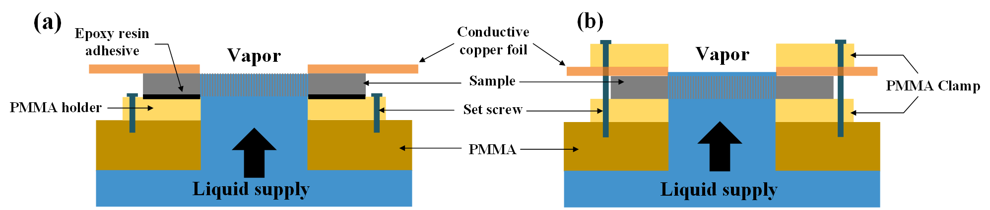 图3 实验样品固定方式对比,(a)单侧固定,(b)双侧固定