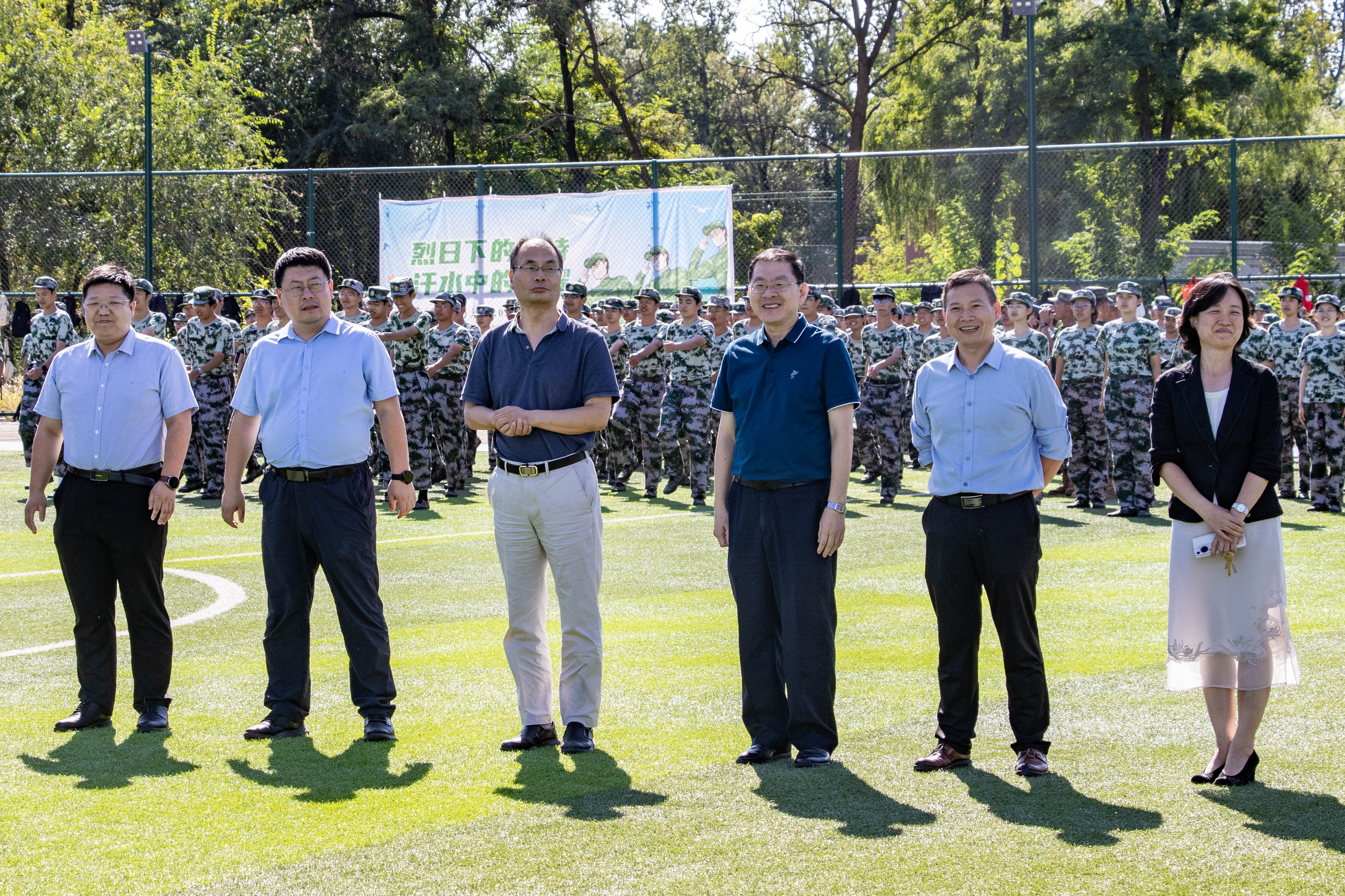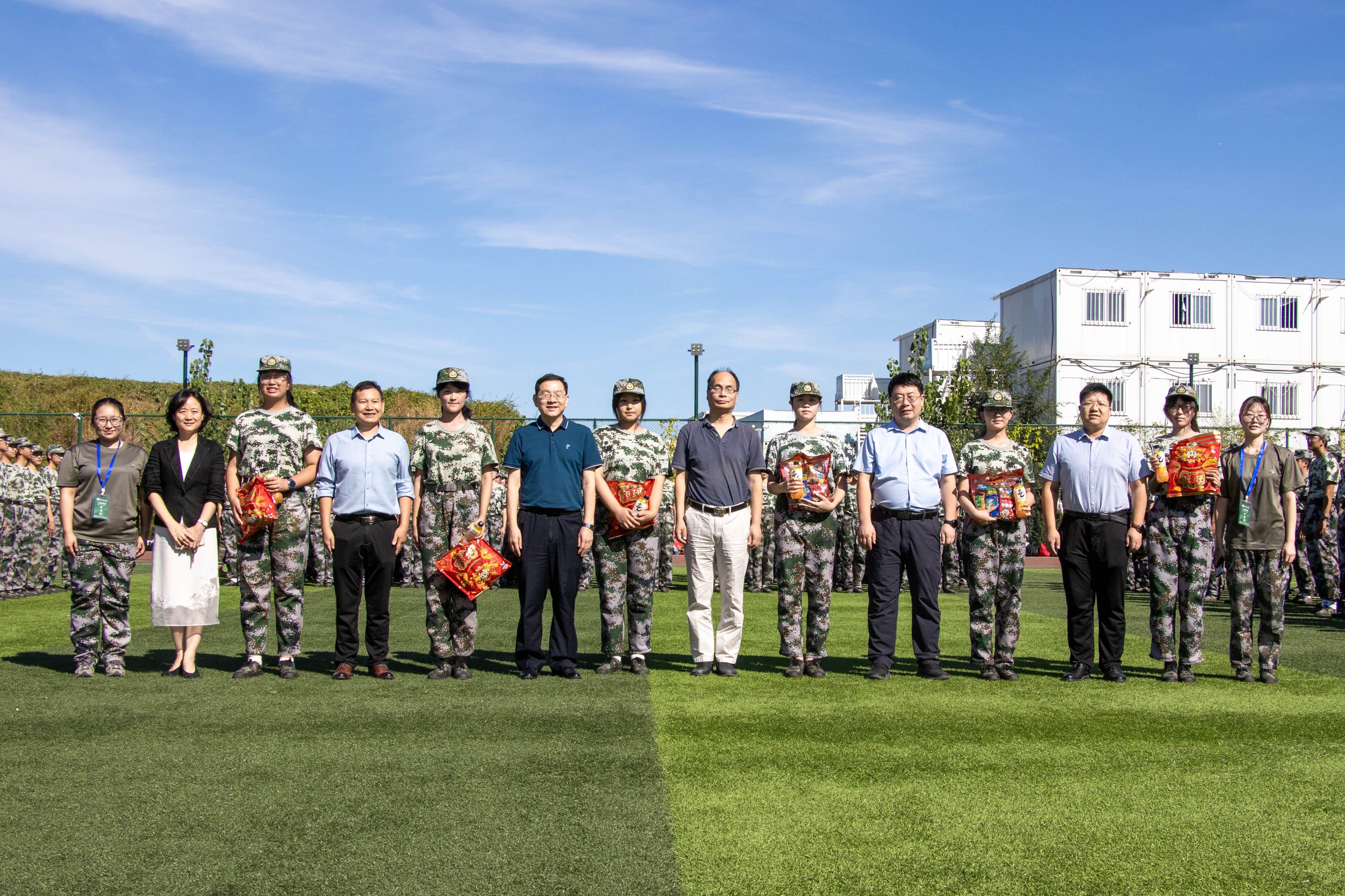 9月19日下午,公司党委书记肖万里、经理杜小泽、副书记薛明磊、副经理张宇宁、冼海珍、张衡慰问参加军训的2025级新生和承训教官。